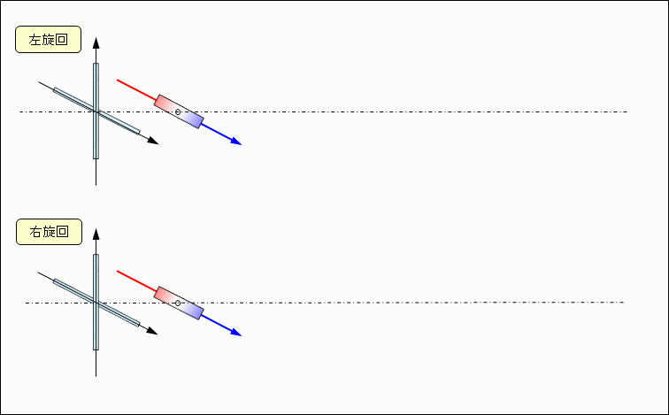 Figure 3 shows the rotating magnetic field generated by the cross dipole antenna. The upper magnetic field is the rotating anticlockwise toward the direction of travel with the output delayed by anticlockwise, and the lower magnetic field is the rotating clockwise with the output delayed by clockwise.