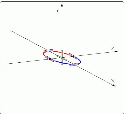 Magnetic fields traveling in the Z-axis direction rotate about the Z-axis axis as described above. And the magnetic fields traveling in the X-axis and Y-axis directions spread radially, like the magnetic fields generated by a dipole antenna, for each. Note that the direction of the magnetic field spread in the X-axes and Y-axes is orthogonal to the magnetic field generated by the dipole antenna, which is radially spread with the antenna as the central axis.