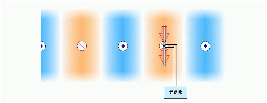 Note that it has been thought that "radio waves have an electric field, which produces a potential difference between the two ends of a bar antenna, and a current is output according to that potential difference," but as described above, a similar current is output by a traveling magnetic field (an alternating magnetic field).