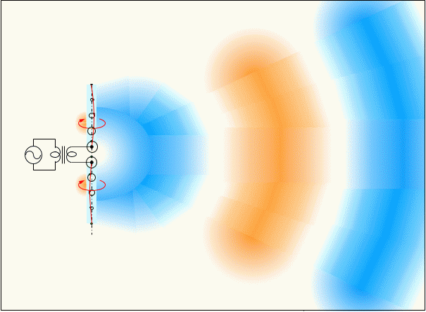 Figure 4 shows schematically how the magnetic field generated around the dipole antenna is pushed in the radial direction by a subsequent magnetic field with reversed polarity.