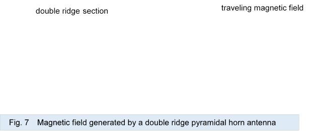Figure 7 shows the current and the magnetic field generated by the current in a double-ridge pyramidal horn antenna with a well-defined current path by the ridge.
